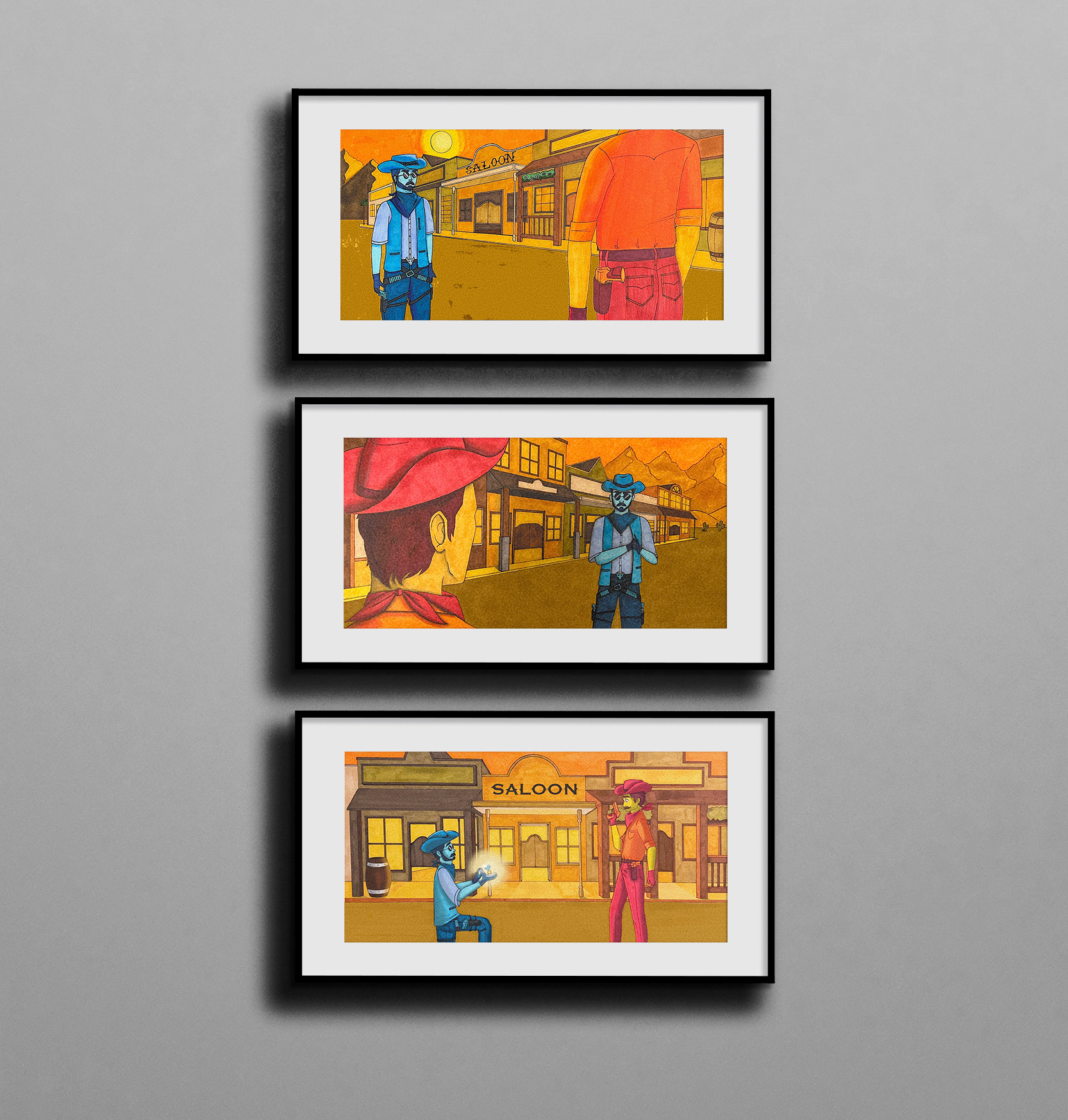 An illustration of two cowboys ready to pull for a showdown but pulled out a proposal.